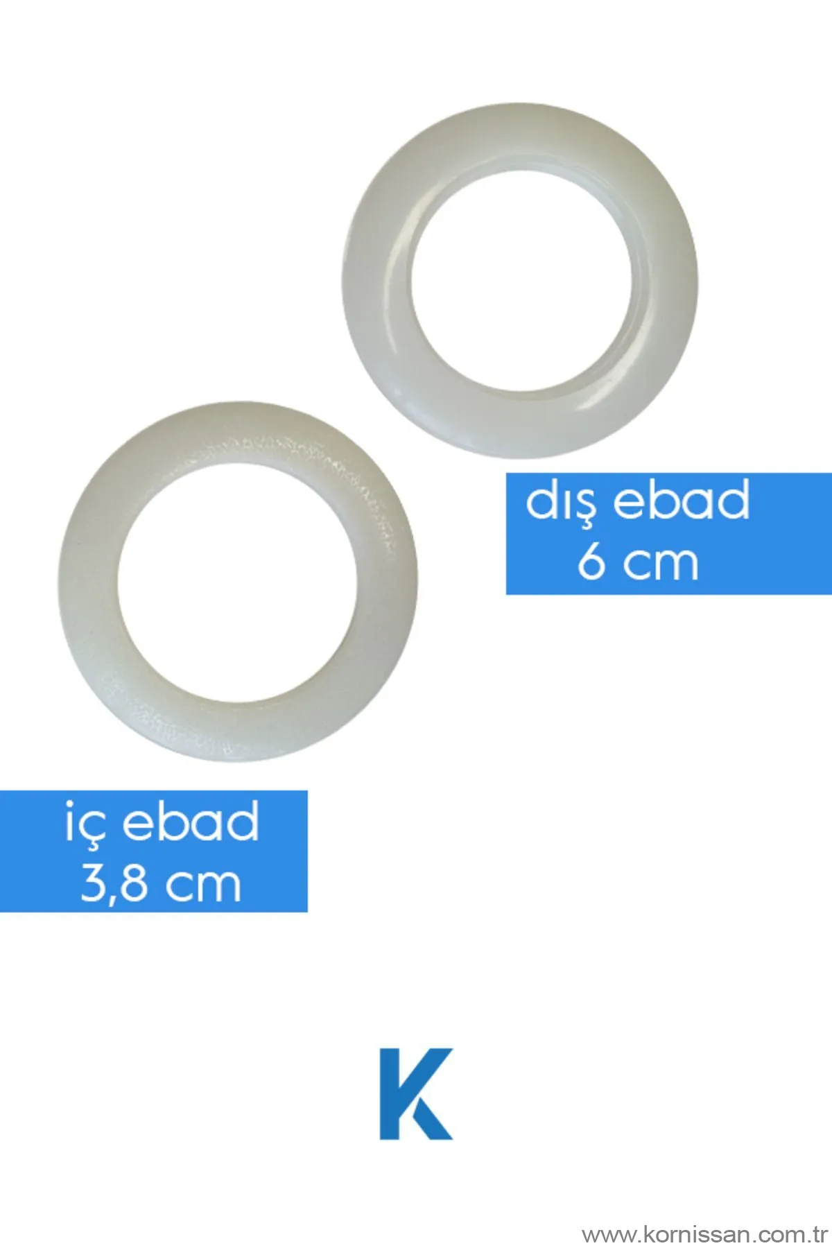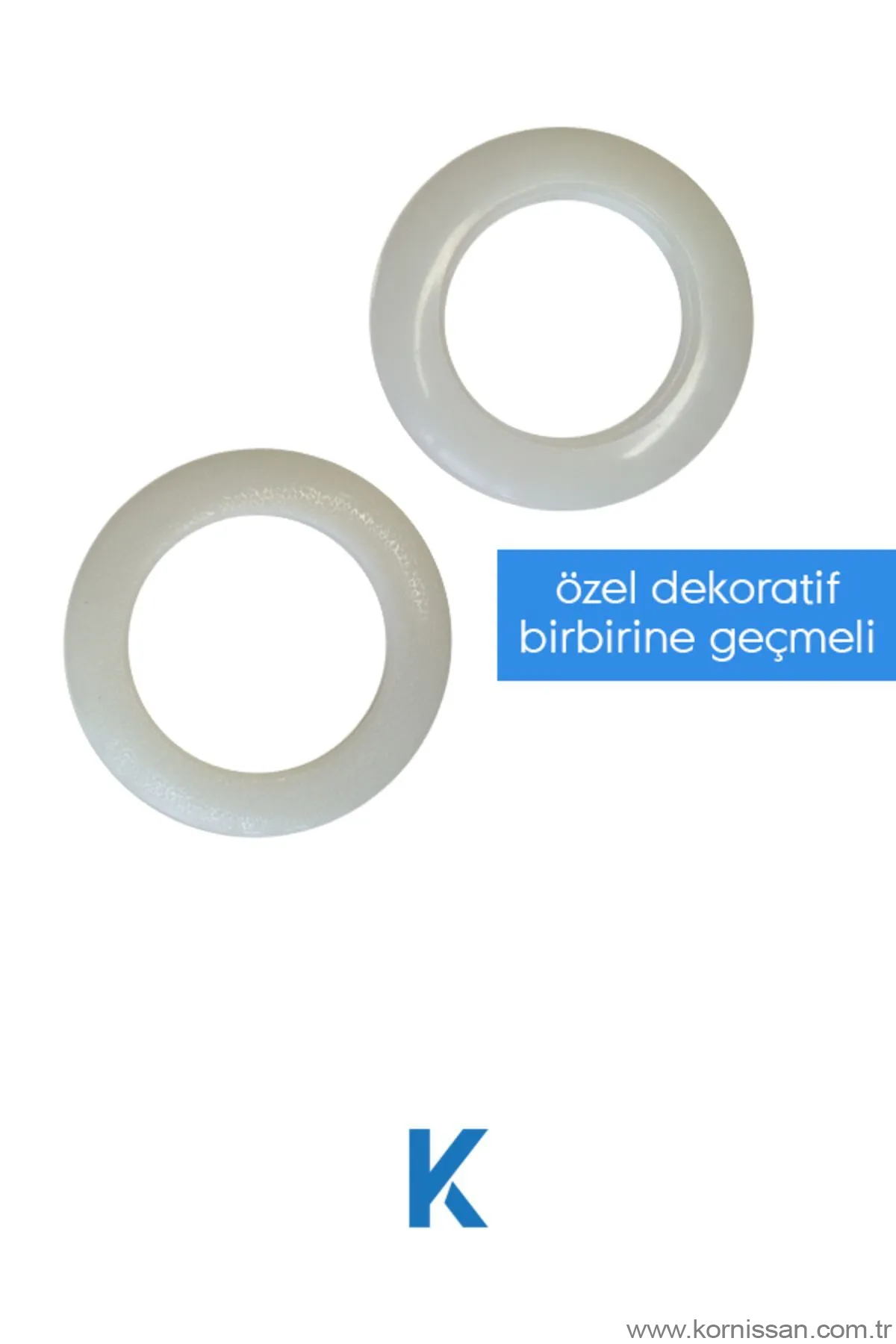 dekoratif beyaz rustik perde halkası 10 adet#### ürün açıklaması:bu çarpıcı dekoratif beyaz rustik perde halkası, evinize hemen tarz ve karakter katabilecek bir aksesuardır. Rustik beyaz renkli bu halkalar, hem dekoratif hem de işlevsel özellikleri ile öne çıkar.#### eşsiz özellikler:- **dekoratif tasarım:** rustik beyaz renkli ve son derece dekoratif bir tasarıma sahiptir.- **yüksek kaliteli:** ürün kaliteli malzemeden yapılmış olup, duvarlarınıza veya perdelerinize zarar vermez.- **kolay kurulum:** perde halkası, kolaylıkla monte edilebilen hafif ve kullanışlı bir yapıya sahiptir. Birbirine geçmeli iki parçadan oluşur.#### ürün fırsatları ve faydaları:- **rustik şıklık:** beyaz rengin verdiği zarif etki ve rustik dokunuşlar, her tür iç dekorasyonla kolaylıkla uyum sağlar.- **işlevsel:** sadece dekoratif bir unsurla sınırlı değil, aynı zamanda perdelerinizi toplamada da işlevsel bir parçadır.- **dayanıklı:** ürün, aşınma ve yıpranmalara karşı son derece dayanıklıdır ve uzun süreli kullanımı garanti eder. (birleştirme hem tırnak hem de dişli sistemi ile sağlam yapıdadır.)#### teknik şartlar:- **ürün adı:** dekoratif beyaz rustik perde halkası- **renk:** beyaz (farklı renk seçenekleri mevcuttur)- **malzeme:** yüksek kaliteli metalden yapılmıştır- **boyutlar:** dış ölçüsü 6 cm, iç ölçüsü 3,8 cm (lütfen boyutlar için ürün detaylarını kontrol ediniz)- **ağırlık:** hafif ancak sağlam ve dayanıklı- **paket içeriği:** ürün paketli içinde 10 adet olarak kargolanır (10 x dekoratif beyaz rustik perde halkası)- **kurulum:** kolay montaj#### ürünün avantajları:- Kolay ve hızlı montaj ile zamandan tasarruf sağlar- Uzun ömürlü ve dayanıklı yapısı ile maliyet etkin bir çözüm sunar- Şık tasarımı ile evinize estetik bir değer katar- Çeşitli perde stilleri ile uyumluluk sağlar- ile evinize ulaşır#### müşteri memnuniyeti:kornişsan, ürünlerinde yüksek kaliteyi garanti eder ve sağlamlığına güvenir. Müşteri odaklı hizmet anlayışı ile müşterilerinin beklentilerini fazlasıyla karşılar. Evinizin veya işyerinizin dekorasyonunda kullanacağınız perde ve aksesuarları seçerken, kornişsan'ı tercih ederek kaliteli ve güvenilir bir hizmet alabilirsiniz.bu parça, perde halkaları ve ev dekorasyonunda sofistike bir ifade oluşturmak isteyen herkes için mükemmel bir seçimdir. Ev dekorasyonunuza rustik bir dokunuş ekleyerek aynı zamanda modern ve şık bir görünüm sunan bu dekoratif perde halkası, evinizin dört bir yanındaki her odanın atmosferini zenginleştirir.### siparişinizi hemen verin!evinizi bu şık dekoratif beyaz rustik perde halkaları ile dönüştürmek için siparişinizi hemen verin ve ev dekorasyonunuza estetik bir dokunuş katın!