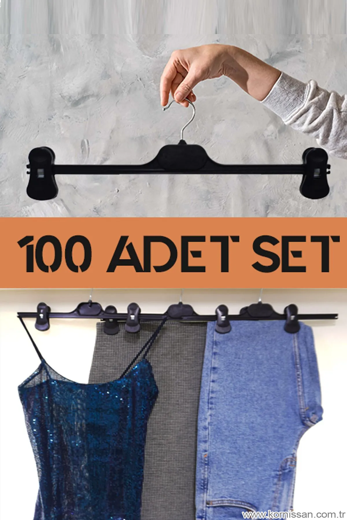 Ürün Detayları: Paket İçeriği: 100 Adet Siyah Döner Başlıklı Mandallı Askı Ürün Boyutları: Genişlik: 36 cm, Yükseklik: 14,7 cm Malzeme: Sağlam ve dayanıklı plastik Özellikler: Kıyafet boyuna göre sağa ve sola hareket ederek kullanım kolaylığı sağlar Koruma: Askı mandalı içindeki özel koruyucu silikan ile kıyafet ve elbiselerinizde iz bırakmaz Kullanım Kolaylığı: Pantolon ve eteklerinizi kolaylıkla asabilirsiniz Ek Özellikler: Askı kenarlarında mini aksesuar kancaları bulunmaktadır Ürün Tanımı: Kornişsan mandallı askı seti ile dolaplarınızı düzenlemek artık çok daha kolay! Her pakette 100 adet bulunan bu mandallı askılar, kıyafetlerinizi düzenli tutmanıza yardımcı olur. Sağlam ve dayanıklı plastik malzemeden üretilmiştir, kolay kırılmaz. Özel koruyucu silikan içeren askı mandalları, kıyafetlerinizde iz bırakmaz. Kıyafet boyuna göre sağa ve sola hareket edebilen döner başlıklı tasarımı, kullanım kolaylığı sağlar. Ayrıca, askı kenarlarındaki mini aksesuar kancalarıyla ekstra düzenleme imkanı sunar.