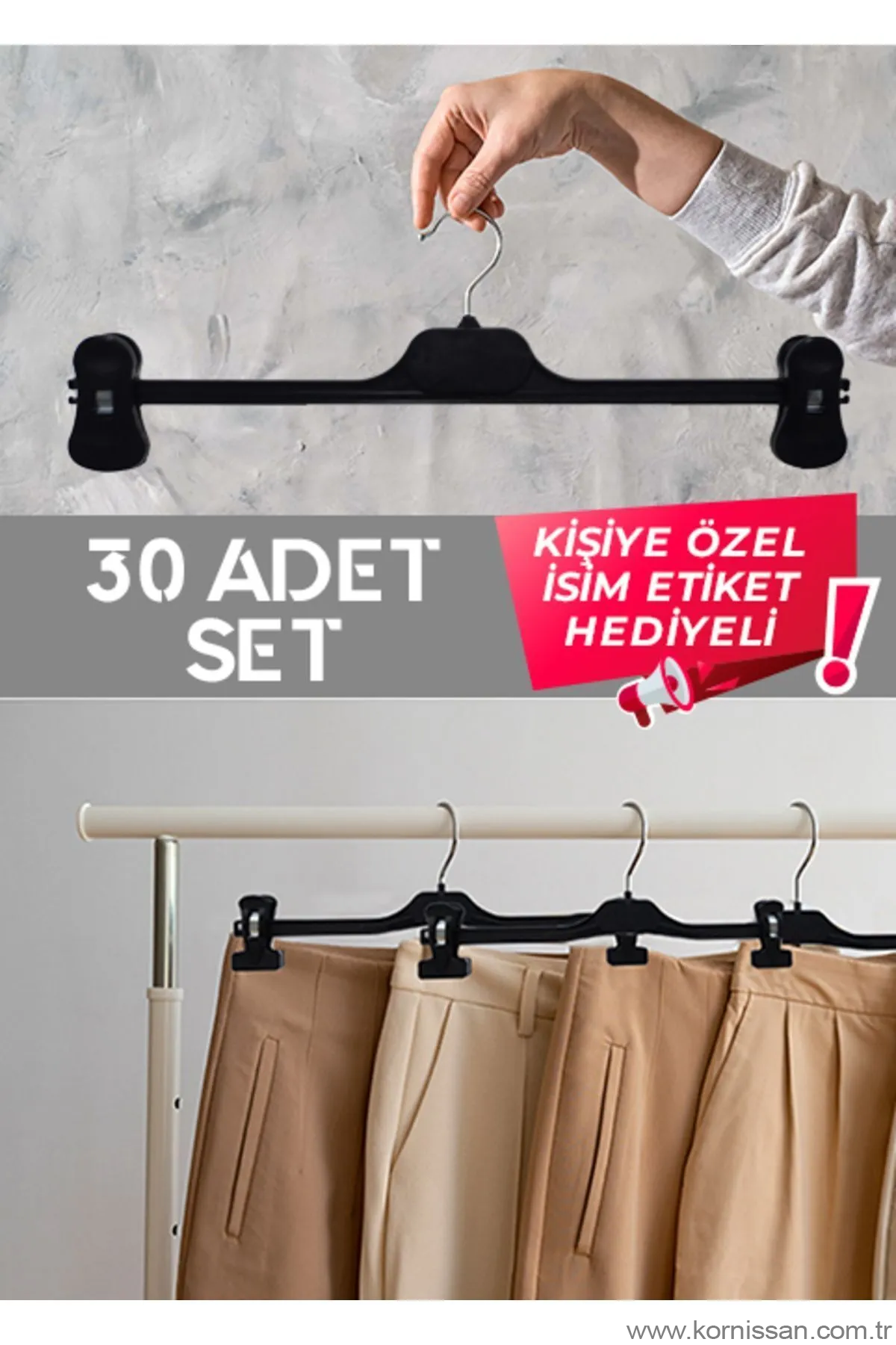 Dolap düzenlemesi artık çok daha kolay ve düzenli! Bu 30'lu döner başlıklı mandallı askı seti, pantolon, etek ve diğer kıyafetleriniz için mükemmel bir çözüm sunar. Her bir askı, kullanımı kolaylaştıran döner başlıklı mandallarla donatılmıştır ve kıyafetlerinizi iz bırakmadan asmanızı sağlar. Kaliteli malzemelerden üretilen bu siyah askı seti, uzun ömürlüdür ve dolabınızı düzenli tutmanıza yardımcı olur. Ürün ölçüsü 38 cm'dir ve standart dolaplar için uygundur. Ayrıca, her bir askıya kişiye özel isim etiketi de hediye edilir, böylece kişisel dokunuşlarınızı ekleyebilirsiniz. Mükemmel tasarımı sayesinde dolabınızı düzenlemenize yardımcı olan bu askı seti, fonksiyonel tasarımıyla da dikkat çeker. Kenarlarında bulunan mini aksesuar kancaları sayesinde ekstra düzenleme imkanı sunar, böylece dolabınız daha da organize ve kullanışlı hale gelir. Kornişsan askı seti, dolap içi düzenleyici, askılık, pantolon askısı, elbise askısı, etek askısı gibi birçok farklı amaç için kullanılabilir.