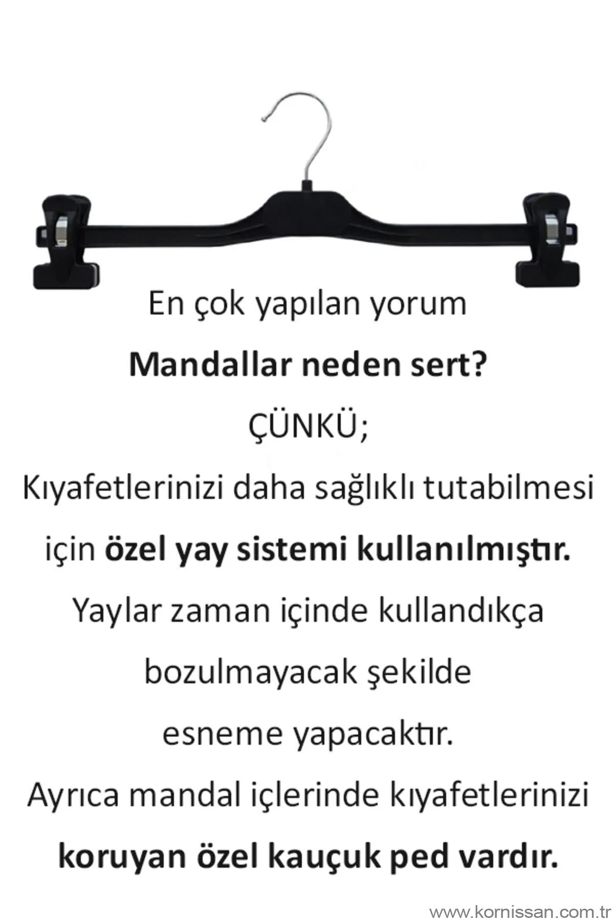 Dolap düzenlemesi artık çok daha kolay ve düzenli! Bu 4'lu döner başlıklı mandallı askı seti, pantolon, etek ve diğer kıyafetleriniz için mükemmel bir çözüm sunar. Her bir askı, kullanımı kolaylaştıran döner başlıklı mandallarla donatılmıştır ve kıyafetlerinizi iz bırakmadan asmanızı sağlar. Kaliteli malzemelerden üretilen bu beyaz askı seti, uzun ömürlüdür ve dolabınızı düzenli tutmanıza yardımcı olur. Ürün ölçüsü 38 cm'dir ve standart dolaplar için uygundur. Mükemmel tasarımı sayesinde dolabınızı düzenlemenize yardımcı olan bu askı seti, fonksiyonel tasarımıyla da dikkat çeker. Kenarlarında bulunan mini aksesuar kancaları sayesinde ekstra düzenleme imkanı sunar, böylece dolabınız daha da organize ve kullanışlı hale gelir. Kornişsan askı seti, dolap içi düzenleyici, askılık, pantolon askısı, elbise askısı, etek askısı gibi birçok farklı amaç için kullanılabilir.