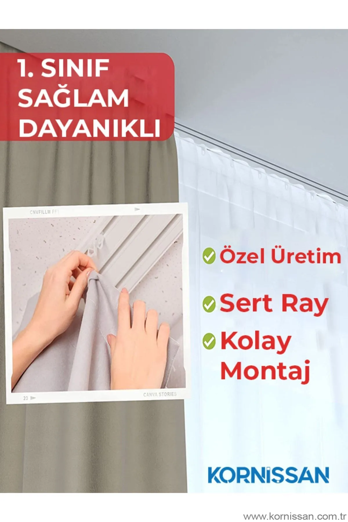 Kornişsan Lüks Birinci Sınıf Perde Ray Korniş: Şıklık ve Kaliteyi Buluşturan Çözüm Bu lüks birinci sınıf perde rayı, kaliteli ve dayanıklı yapısıyla dikkat çekiyor. Tüm ağırlıktaki perdeleri rahatlıkla taşıyabilen bu ürün, kolay montaj özelliği ile de kullanıcıların beğenisini kazanıyor. Özellikler: Yüksek Taşıma Kapasitesi: Tüm ağırlıktaki perdeleri rahatlıkla taşıyabilen dayanıklı bir yapıya sahiptir. Kolay Montaj: Herkesin rahatlıkla kurabileceği şekilde tasarlanmıştır. Ürünle birlikte ücretsiz montaj klavuzu ve özel korniş dübel ve vidaları da gönderilir. Uzun Ömür: Ev ve iş yerleri için uzun ömürlü kullanım sunar. Geniş Kullanım Alanı: Tüm korniş aksesuarlarını uygulayabilirsiniz. Ürün Ölçüleri: Uzunluk x En 6 cm x Yükseklik 2 cm'dir. Vidalama ve yapıştırma uygulamaları için uygundur. Malzeme: 1. sınıf plastikten üretilmiştir (atık plastik değildir), kaliteli ve uzun ömürlü kullanım sağlar. Güvenilir Ambalaj: Ürünlerimiz pat pat ambalaj ve özel karton ile sağlam ve güvenilir bir şekilde paketlenir. Bu lüks birinci sınıf perde rayı, şıklığı ve kaliteyi bir araya getirerek ev veya iş yerinizin dekorasyonuna değer katar. Kolay montajı, uzun ömürlü yapısı ve taşıma kapasitesi ile kullanıcıların beklentilerini karşılamak için tasarlanmıştır.